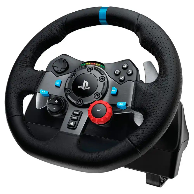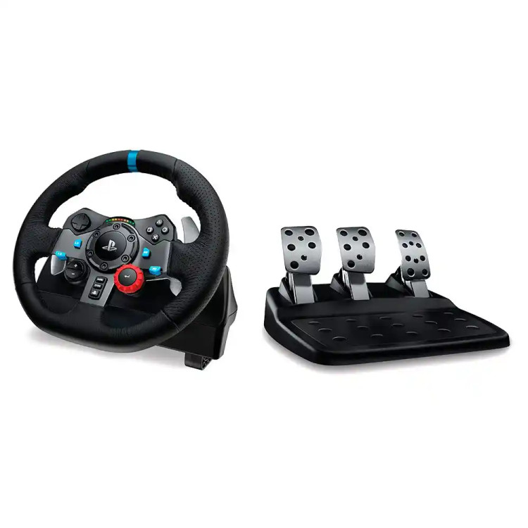 Logitech G29 Driving Force یک فرمان و پدال مسابقه ای مخصوص PS3 و PS4 و PS5 است. البته با برنامه ی gaming Logitech می توان آن را به pc نیز متصل کرد. G29 یکی از بهترین فرمان های ساخته شده برای گیم است. فیدبک دو موتوره، anti backlash، عمر طولانی، دکمه های کمکی، چرخش ۹۰۰ درجه ای فرمان و پشتیبانی از جعبه دنده ی draving force از جمله اپشن هایی است که g29 دارد